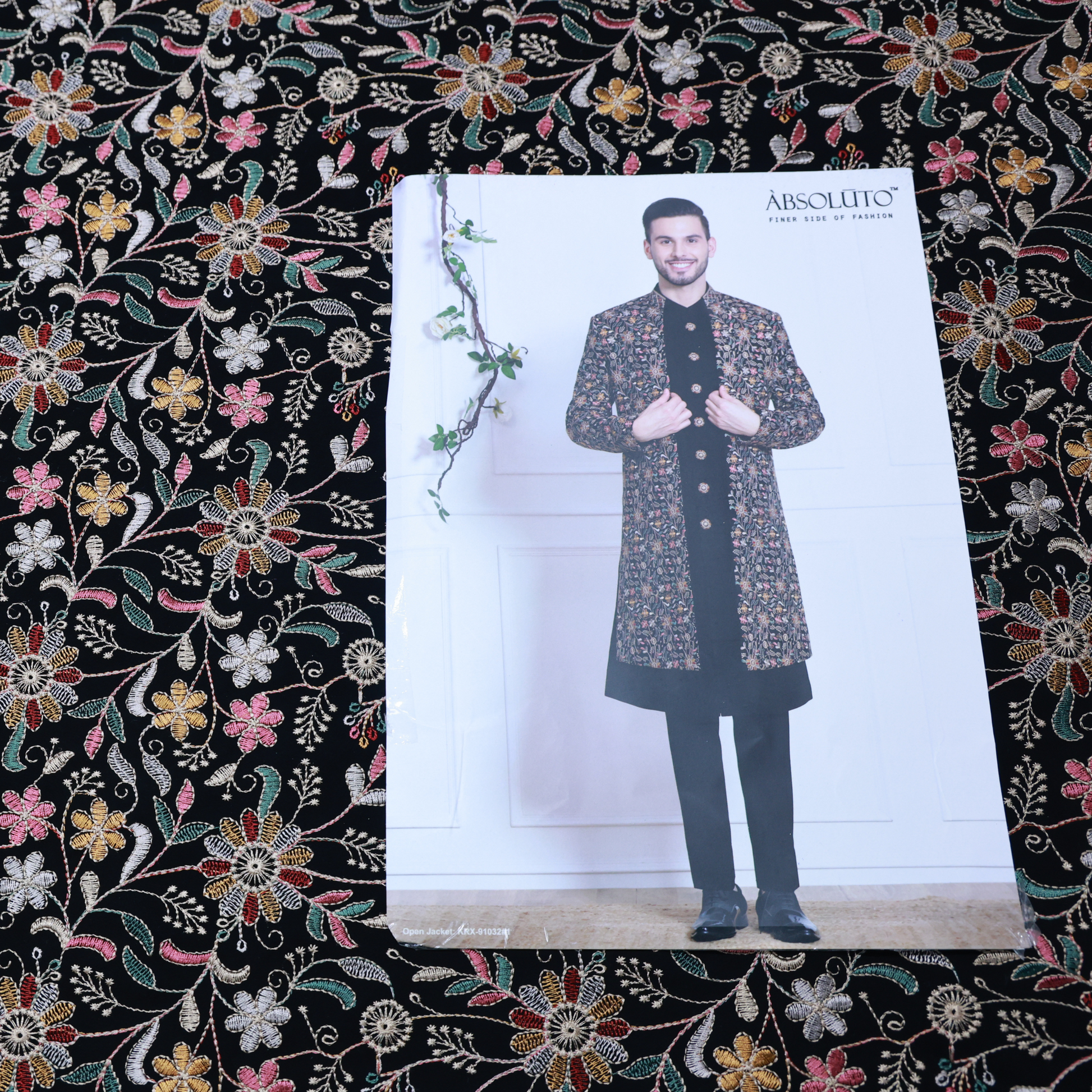 ABSOLUTO JAPANESE BLACK EMBROIDERD SHURG FABRIC