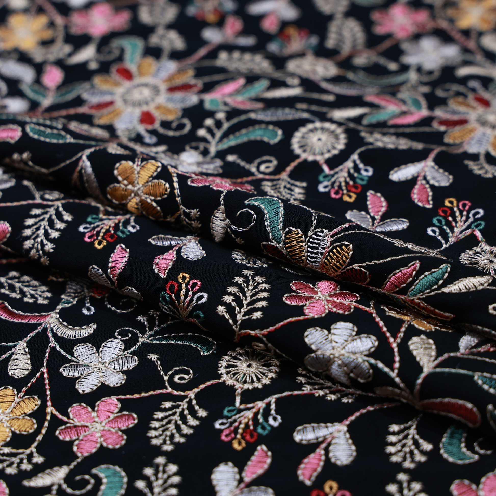 ABSOLUTO BLACK JAPANESE EMBROIDERED FABRIC